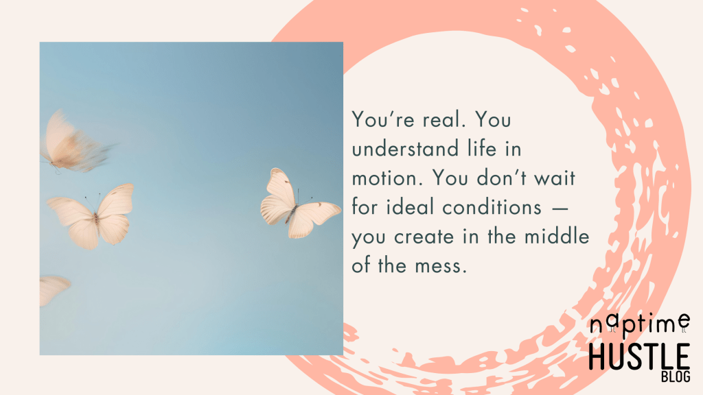 Why? Because you’re real. Because you understand life in motion. Because you don’t wait for ideal conditions — you create in the middle of the mess.